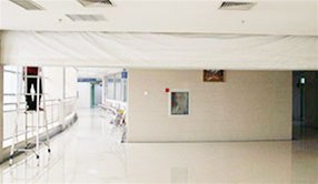 当火灾发生时,安装在房顶的烟感传感器(简称烟感)首先接到烟雾信号,同时向中央控制系统报警,消防中央控制系统通过识别后接通火警所在区域的钢质防火门电源,使火灾区域的防火卷帘按一定的速度下行